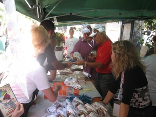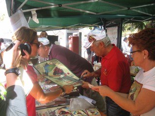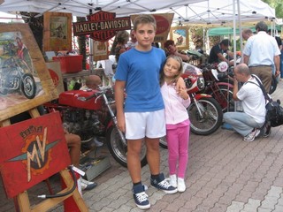 Immagini della vita mattutina a Ospedaletti: le moto in esposizione, migliaia di visitatori, le batterie, gli stand con i gadget della manifestazione, Giacomo Agostini, e altri affermati Campioni, alle prese con gli autografi.