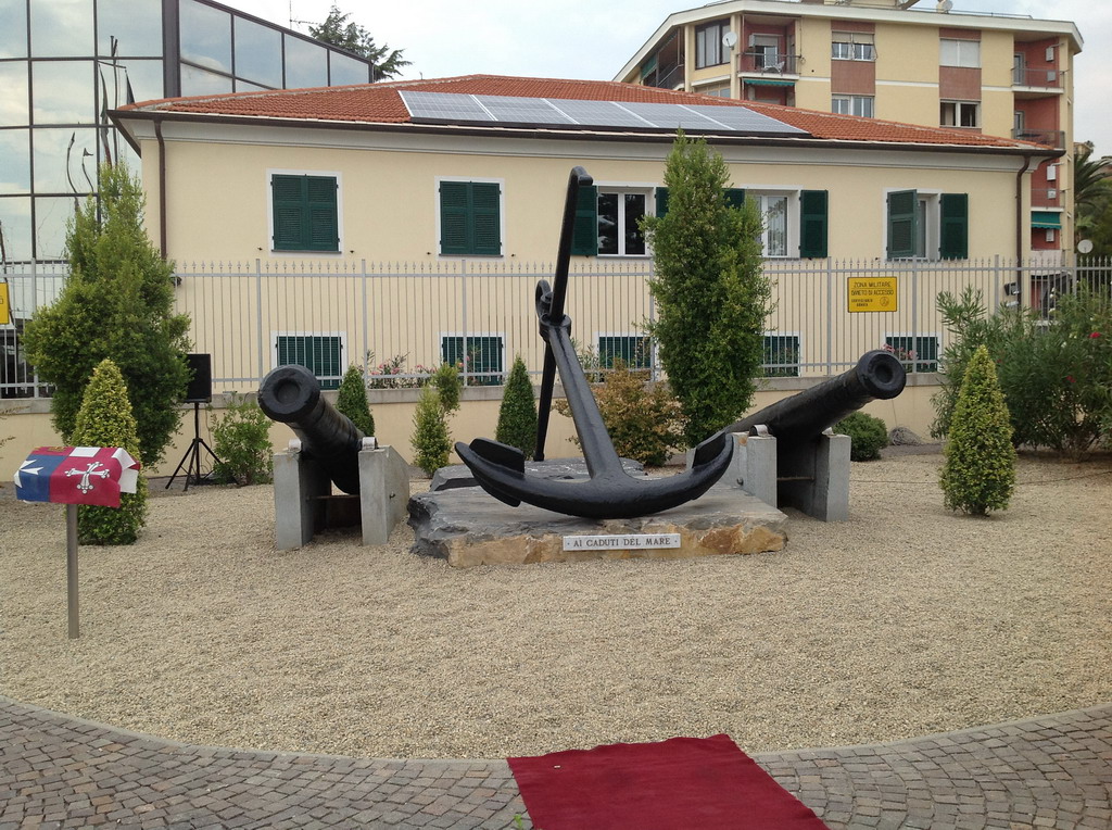 La pietra per la realizzazione del monumento è stata donata dalla Ditta Littardi, che ha anche provveduto al trasporto dalla cava al luogo di alloggiamento. La pietra è stata messa a dimora dalla Ditta Ferrero che ha altresì provveduto a posarvi sopra l’ancora e a trasportare gratuitamente i due cannoni dalla banchina del porto di Oneglia. La verniciatura dei cannoni e dell’ancora è stata curata dal personale del Servizio Arredo Urbano del Comune di Imperia.