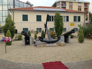 La pietra per la realizzazione del monumento è stata donata dalla Ditta Littardi, che ha anche provveduto al trasporto dalla cava al luogo di alloggiamento. La pietra è stata messa a dimora dalla Ditta Ferrero che ha altresì provveduto a posarvi sopra l’ancora e a trasportare gratuitamente i due cannoni dalla banchina del porto di Oneglia. La verniciatura dei cannoni e dell’ancora è stata curata dal personale del Servizio Arredo Urbano del Comune di Imperia.