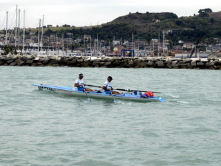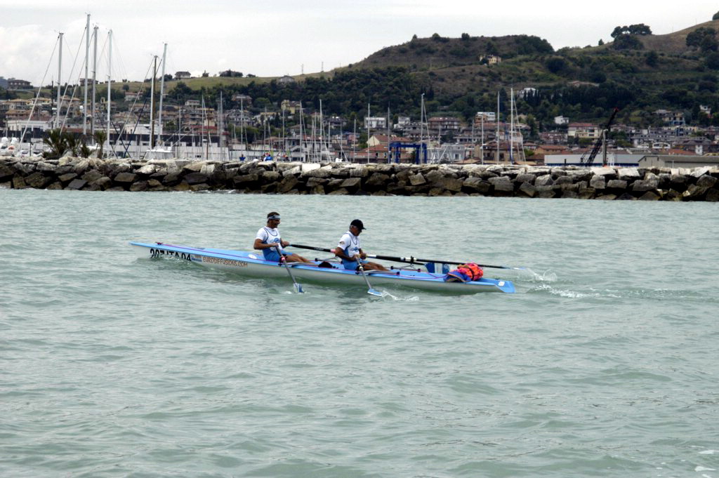Ecco poi il turno dei nostri tri-campioni: PierCarlo Roggero e Hans Buquicchio hanno sbaragliato, ancora una volta, la concorrenza nella categoria del 2x Master Uomini over 55, confermandosi a livello nazionale l’equipaggio dominatore della propria classe di età e togliendosi anche la soddisfazione di insidiare le imbarcazioni in lotta per il podio nella classe dei doppi più giovani. Un oro tanto atteso, quanto prezioso, a conferma dello strepitoso stato di forma di due atleti che hanno evidentemente trovato nella disciplina del remo sul mare la formula per una seconda giovinezza, aiutati da non comuni doti tecniche affinate in anni di esperienza e da un’ammirevole costanza negli allenamenti. Un ottimo tempo, un quarto posto assoluto su un totale di 10 imbarcazioni e un notevole distacco inflitto ai diretti avversari di categoria incorniciano una prova maiuscola dei nostri campioni italiani matuziani.