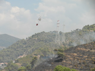Ventimiglia: vasto incendio di sterpaglie nella zona di Bevera, presenti anche i mezzi aerei