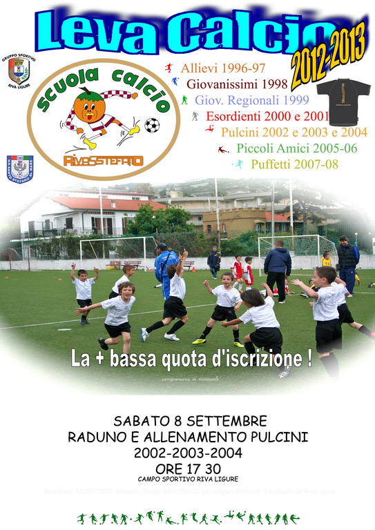 Iniziano gli allenamenti per atleti della Scuola Calcio Riva S.Stefano al campo sportivo di Riva Ligure. Sabato 8 Settembre alle 17. 30 si radunano anche le leve dei Pulcini.
