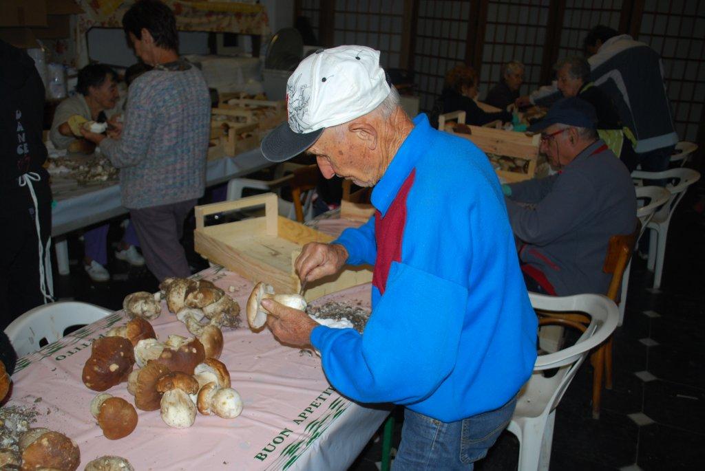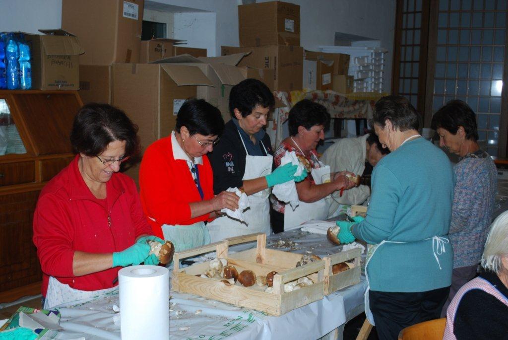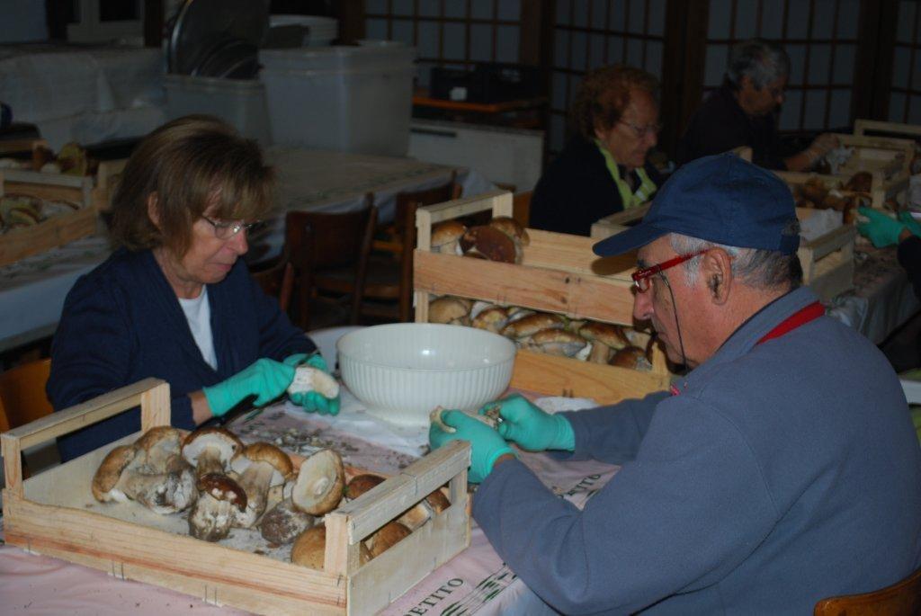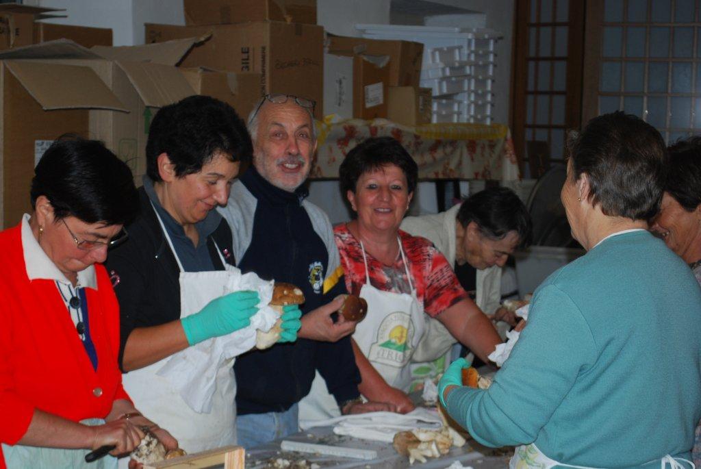 veramente molti, giovani e meno giovani) hanno collaborato al successo. Va considerato che i funghi richiedono una particolarissima attenzione ed un'accurata pulizia e che nella mattinata del 24 settembre, prima che cominciasse a piovere, tutta l'area del Boschetto era stata sgombrata e ripulita a dovere”.