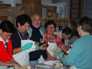 veramente molti, giovani e meno giovani) hanno collaborato al successo. Va considerato che i funghi richiedono una particolarissima attenzione ed un'accurata pulizia e che nella mattinata del 24 settembre, prima che cominciasse a piovere, tutta l'area del Boschetto era stata sgombrata e ripulita a dovere”.