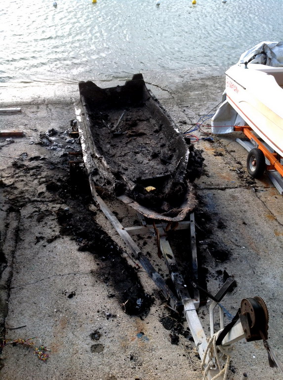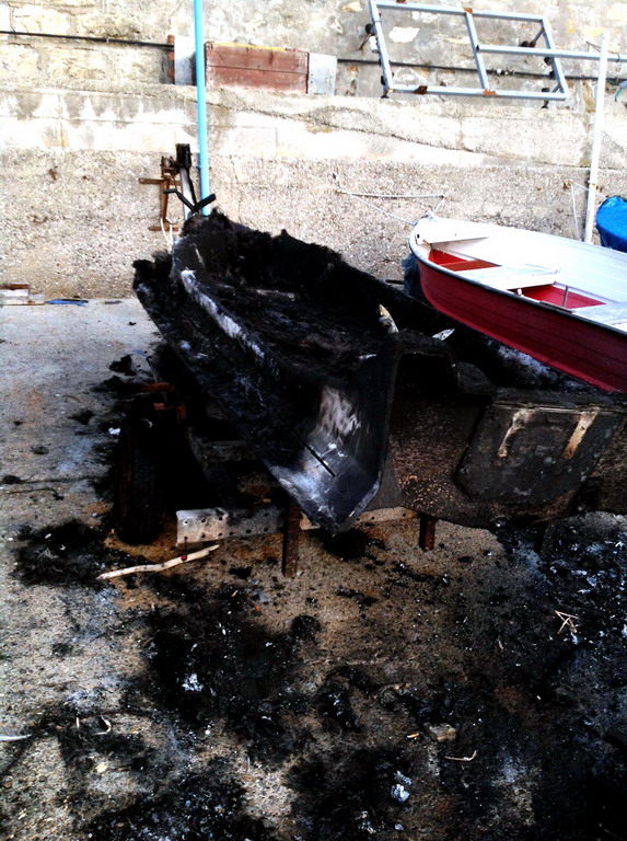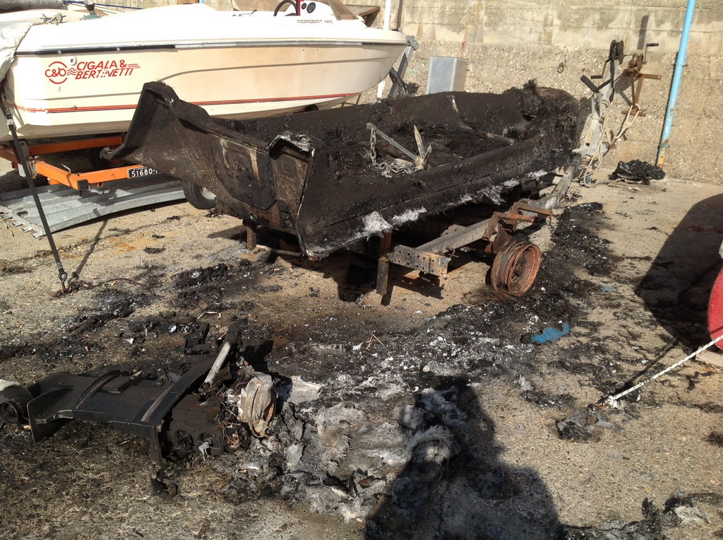 Il gommone di un milanese, Valerio Villa, che era stato tirato a secco nella zona di Borgo Prino ad Imperia, è andato distrutto da un incendio divampato questa mattina intorno alle 5.30.
