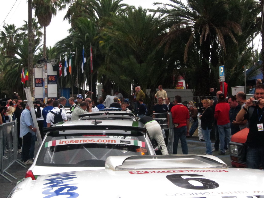 Tanti gli appassionati che come ogni anno hanno seguito il rito della partenza sotto un cielo grigio ma non minaccioso di pioggia che renderà sicuramente la gara ancora più imprevedibile. Il 54° Rallye Sanremo è infatti la settima delle otto prove del Campionato Italiano Rally e la dodicesima delle tredici prove dell'Intercontinental Rally Challenge. Per entrambe le competizioni la gara del Ponente Ligure potrebbe essere decisiva.