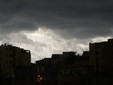 "San Romolo con la pioggia torrenziale dopo una bella giornata calda, che poteva far presagire il brutto tempo".
