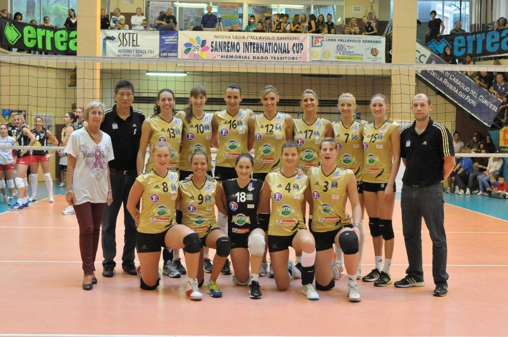 Dieci set di spettacolo ed emozioni, domenica, per la giornata conclusiva della 28^ Sanremo International Cup Memorial Dado Tessitore. In una palestra di Villa Ormond straripante di pubblico, la formazione della Banca Reale Yoyogurt Giaveno, piccolo centro non lontano da Torino, ha superato 3-2 con merito lo squadrone francese del Cannes dopo oltre due ore di gioco. Ravva e compagne, sotto per 2-0, sono riuscite a riportarsi in parità, ma nel tie-break il team del Giaveno, matricola della A1 e per la prima volta di scena nella Città dei Fiori, è stato più lucido e concreto e non si è lasciato scappare l'occasione di iscrivere il proprio nome nell'albo d'oro. Cannes, già a segno tre volte nel torneo, è solo arrivato ad un passo dal poker. Non sono bastati i 23 punti di Mihajlovic. Tra le torinesi, ottima gara di Grothues (16), Senkova (14) e Murrey (11). E' rimasta invece per tutta la partita in panchina l'ex-azzurra Togut, iridata nel 2002. La gara è stata diretta da Mauro Goitre e Giuliano Venturi di Torino. Nemmeno la pioggia, abbattutasi violentemente su Sanremo nel tardo pomeriggio, ha disturbato lo svolgimento del match grazie alla prontezza del servizio a bordocampo predisposto dall'organizzazione. Raggiante, al termine, il presidente del Giaveno, Claudio Ricci, sempre vicino alla propria squadra insieme al g.m. Antonio Vagliengo.