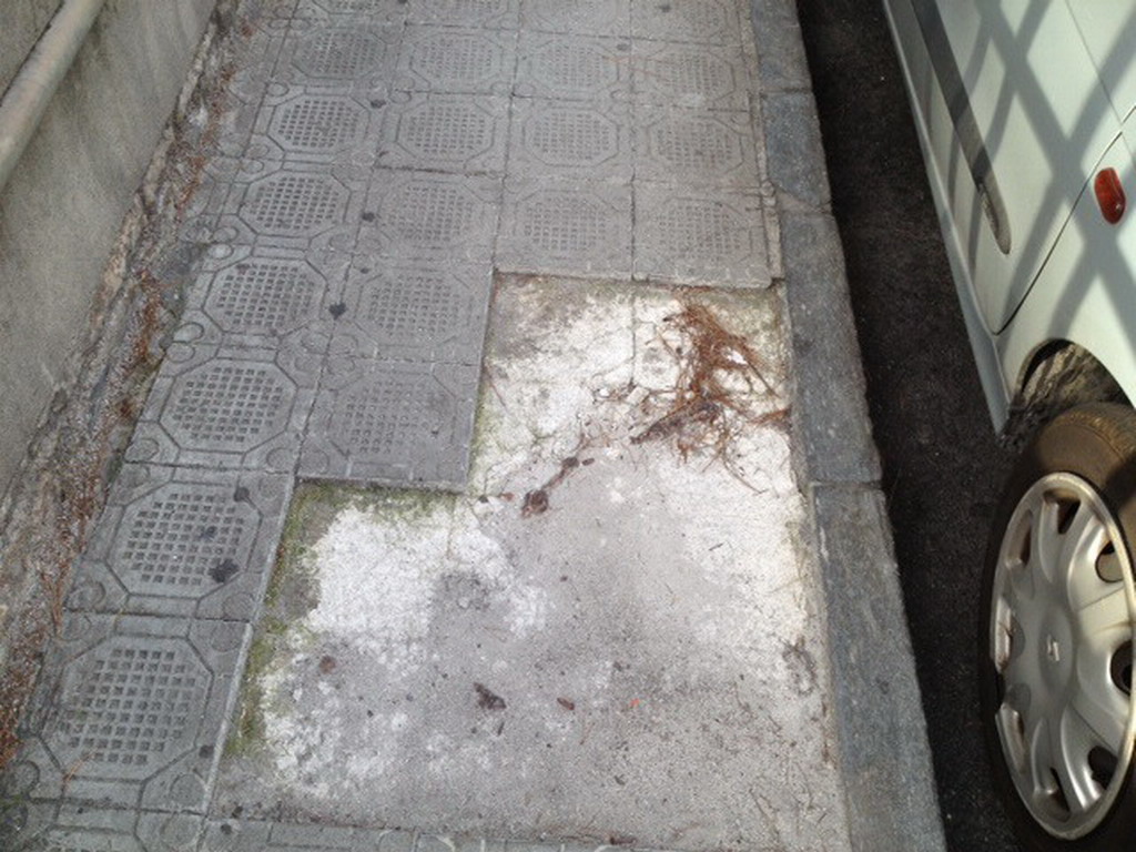 Gino Boffa segnala lo stato del marciapiede in via Amoretti ad Imperia.