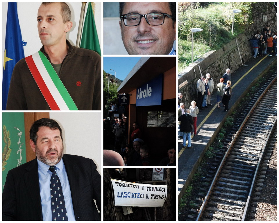 Uno dei principali promotori di questa protesta è stato il sindaco di Airole, Fausto Molinari che ha dichiarato: "Ovviamente la protesta di oggi non rigurda solo Airole però nella politica dei tagli non capisco come si possa far passare un treno che non si fermi in queste tre fermate intermedie. Ad oggi ci sono 8 treni all'andata ed 8 al ritorno e nessuno si fermerà mai più in questi tre paesi. Siamo all'assurdo, in un'Italia che deve ripartire non si può sempre partire dal taglio dei servizi Oggi è una giornata interlocutoria ma la Regione Liguria deve comunque fare la sua parte. Oggi è interlocutoria ma poi vedremo di portare avanti una protesta forte per riavere le fermate dei nostri treni e per tutta la val Roja. Noi rispetto ai treni che già ci sono ne chiediamo ancora di più però ovviamente su tutte le cose si possono fare delle trattative, si possono vedere delle esigenze, salvaguardando almeno quelli al mattino ed a mezzogiorno per salire e subito dopo per scendere quelli di pomeriggio e sera. Bisognerà poi vedere anche cosa ne pensano gli altri paesi coinvolti. Noi intanto abbiamo presentato un progetto europeo insieme ad altri comuni francesi, dove Airole è capofila, per potenziare la linea ferroviaria e promuovere un turismo ecosostenibile. Il trait d'union era il treno se ce lo levano come facciamo. Un dato soltanto, ieri 50 persone sono scese ad Airole, hanno fatto una passeggiata nei nostri sentieri, 50 persone hanno preso un caffè, magari a 50 persone piace il paese e comprano casa e da lì riparte la nostra piccola economia fatta sul turismo".
