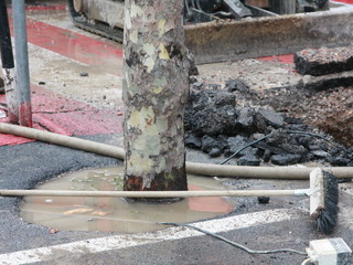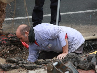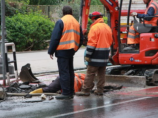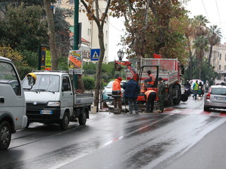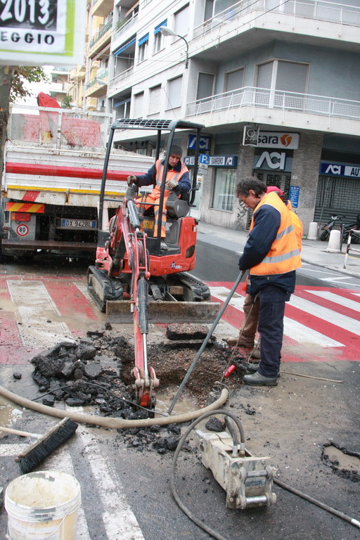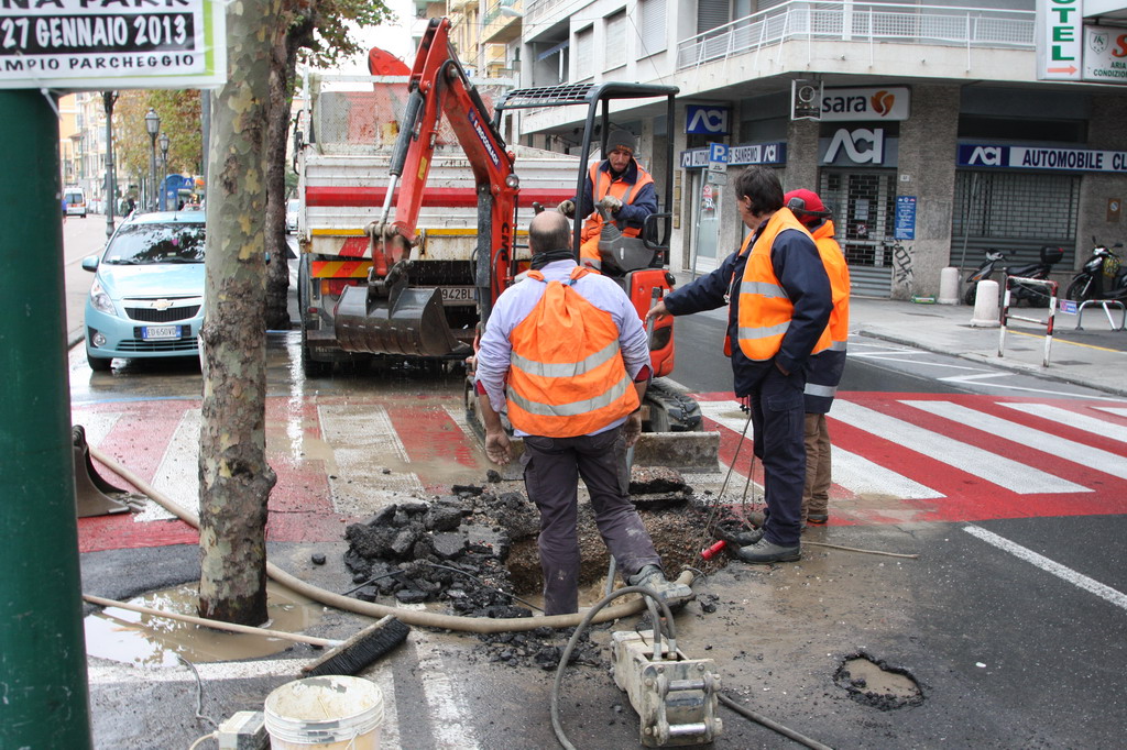 Gli operai dell'Amaie sono al lavoro già da qualche ora su una vistosa perdita d'acqua in corso Orazio Raimondo a Sanremo. La falla creatasi stamani