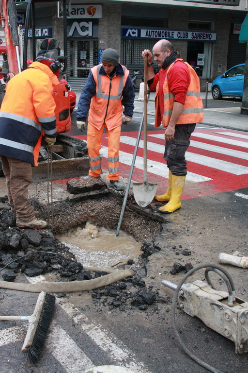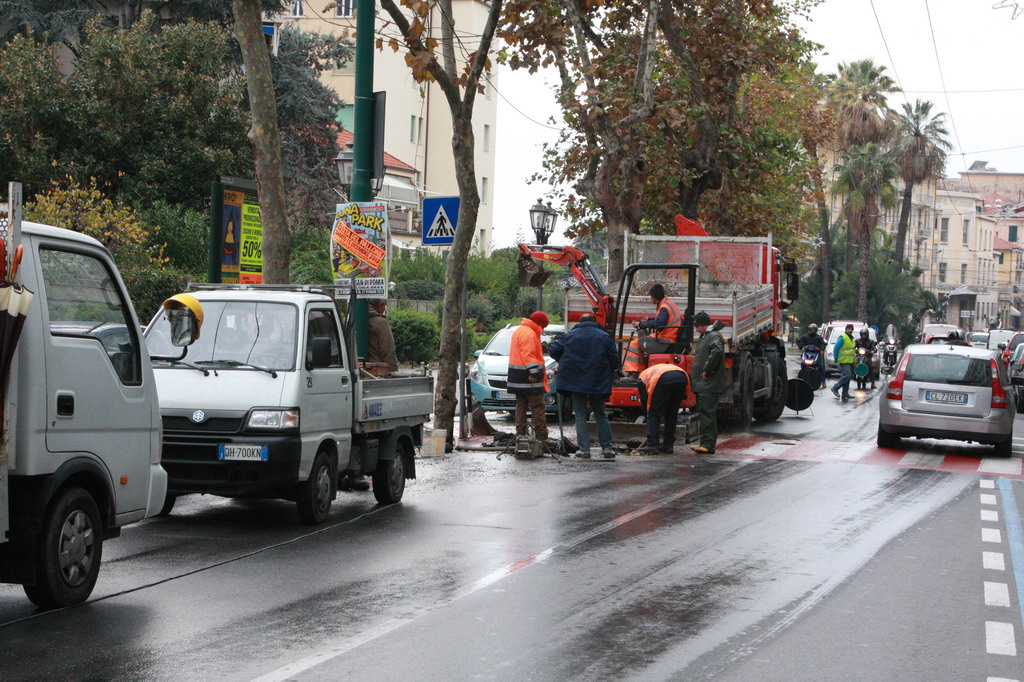 Sanremo: falla sulla tubatura principale dell'acquedotto in corso Orazio Raimondo