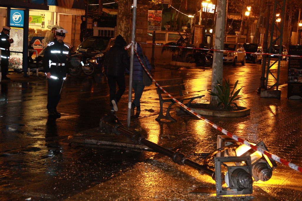 Sanremo: lampione si abbatte sul marciapiedi di corso Garibaldi, nessun ferito