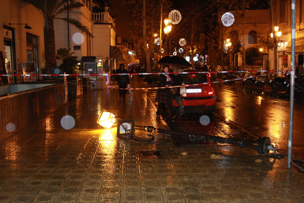 Un lampione di corso Garibaldi a Sanremo è letteralmente franato a terra intorno alle 17. Per fortuna in quel momento, davanti all'ex hotel Des Entragers non c'era nessuno, altrimenti ci sarebbe stato anche qualche ferito.