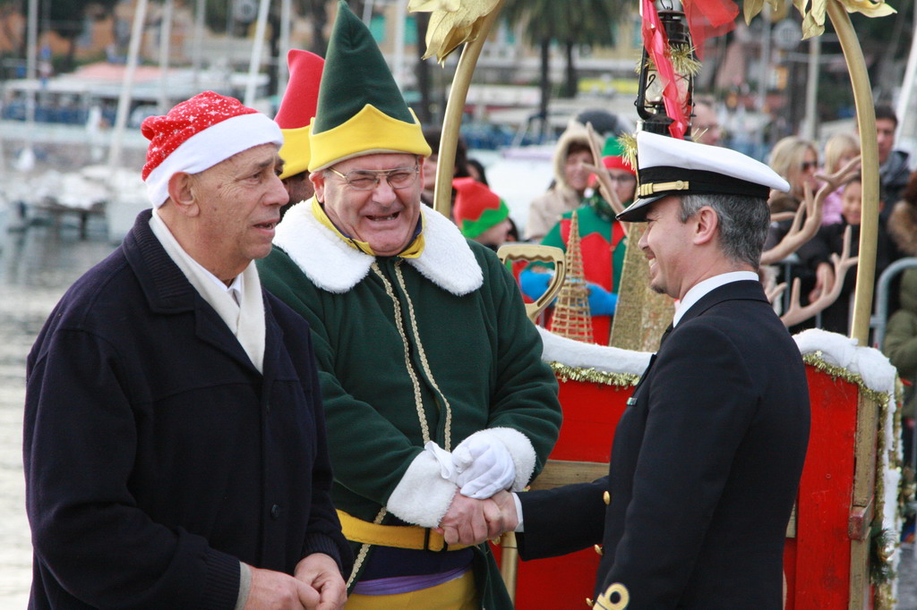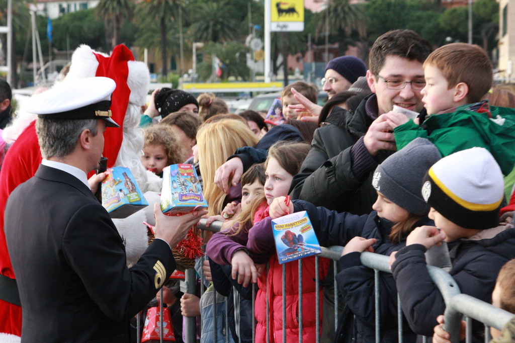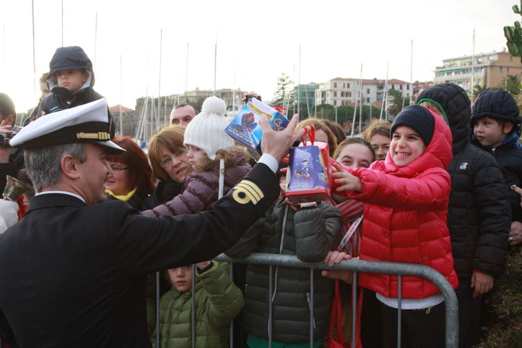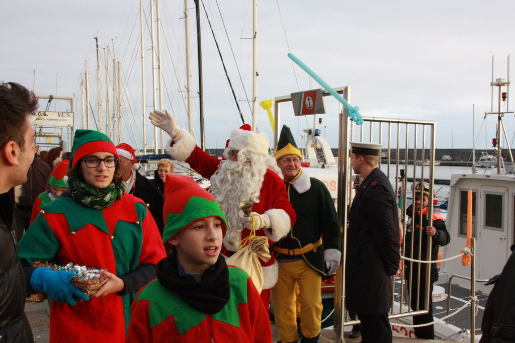 Nel primo pomeriggio di quest'oggi, Vigilia di Natale, presso la banchina L. Vesco (di fronte alla Capitaneria di Porto) a Sanremo, si è svolta la ormai tradizionale manifestazione chiamata “Babbo Natale vien dal mare”. La festa, per i più piccoli, è iniziata quando sulla motovedetta della Capitaneria di Porto CP882 - in quel momento ancora all’ingresso del Porto Vecchio – i bimbi hanno scorto una figura piuttosto imponente con vestito rosso e barba bianca: che sia proprio Babbo Natale?