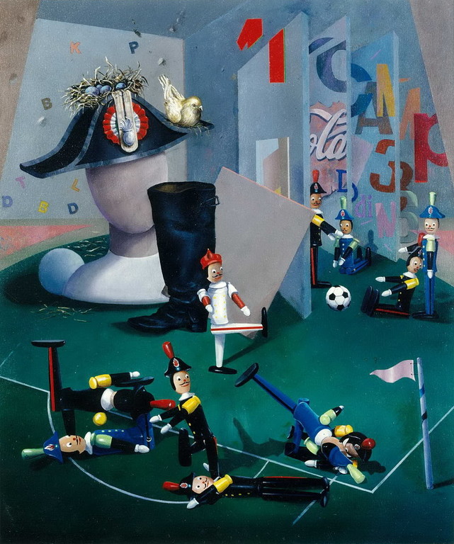 L'esposizione è accompagnata dal testo critico della dottoressa Giorgia Cassini, noto critico d'arte che così ci introduce all'esposizione: "La produzione artistica di Don Manfredi è collezione ove quel che rende universale la narrazione è la contaminazione tra fantasia e realtà. Nelle sue opere la realtà è trasformata in gioco e il gioco diventa reale. Arguzia e malinconia, verità e invenzione sono gli ingredienti fondamentali delle ludiche opere che mette in scena. Nel tema del gioco egli trova l'ambiente ideale per esercitare la sua onirica fantasia, traspone sulla tela le visioni di un viaggiatore dell'inconscio che esplora i desideri fanciulleschi non dichiarabili dell'uomo contemporaneo". E conclude: "In un'epoca dominata da computer e videogiochi, egli interpreta il mondo della favola tradizionale rinnovando l'emozione del racconto e della fiaba di un tempo: i protagonisti del suo mondo custodiscono e perpetuano il ricordo di carillon, di trottole, di trenini, di soldatini, di marionette, di pupazzi, di burattini, di un esercito di giochi la cui animazione, attraverso la sfera affettiva dell'infanzia, ci proietta in dimensioni cariche di significati simbolici".
