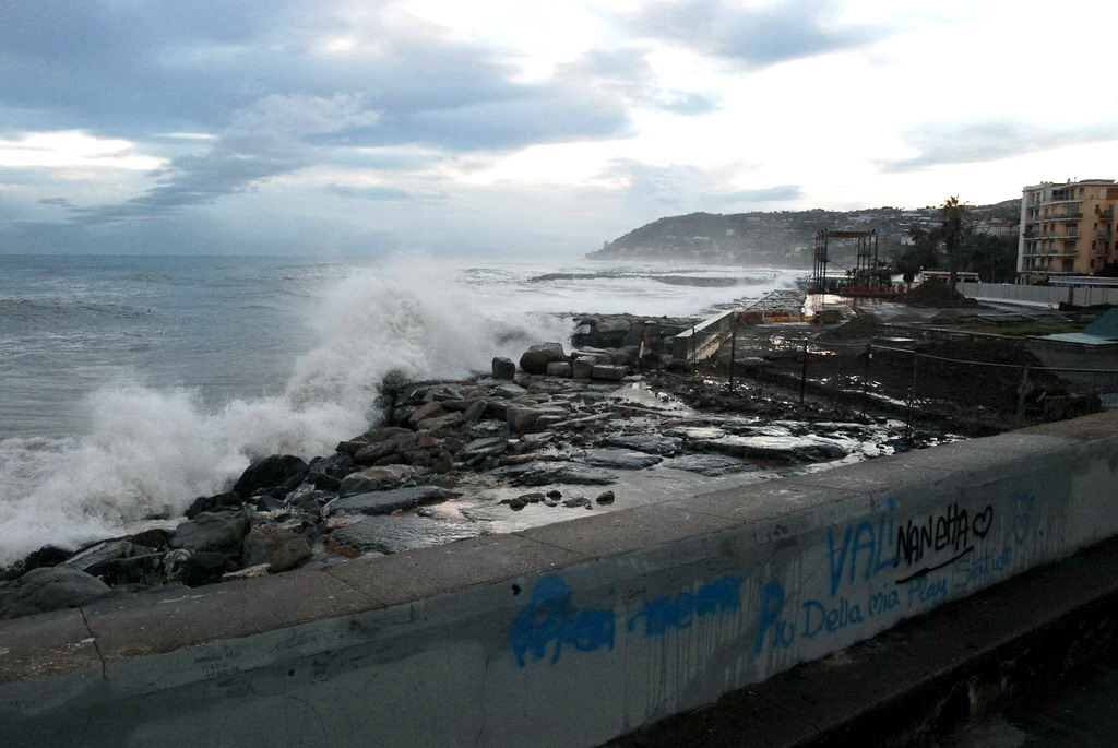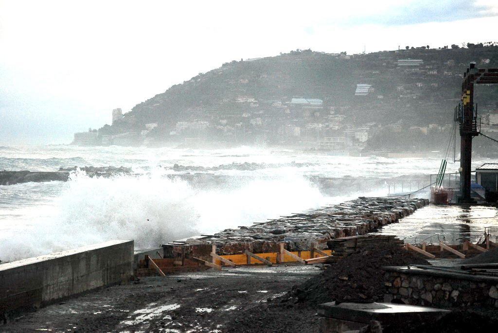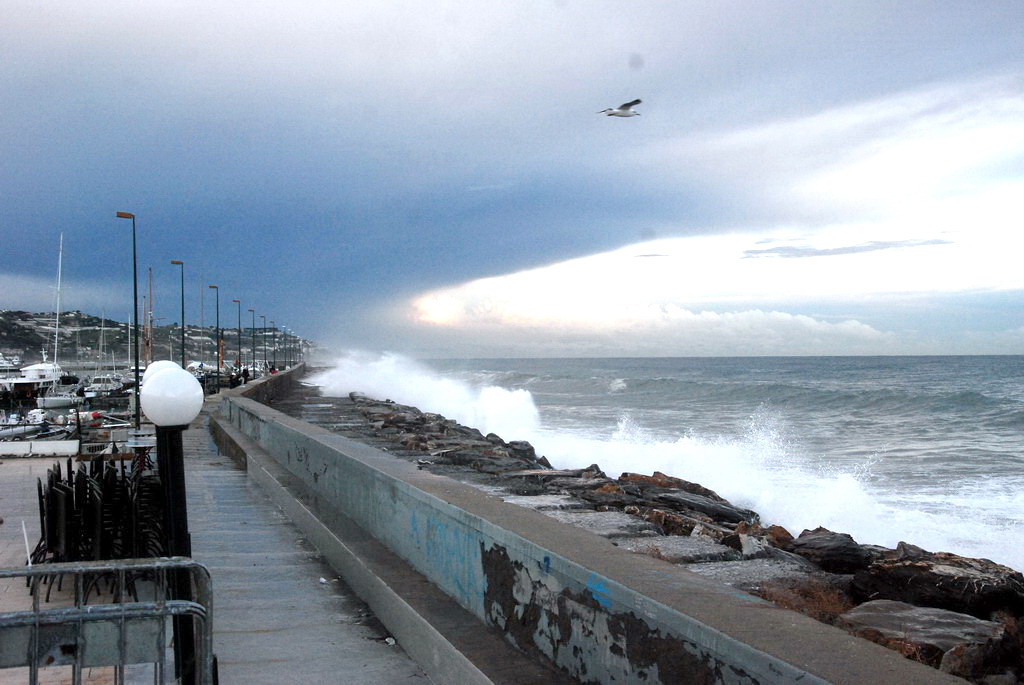 Sanremo: mareggiata in atto, a Portosole 10 auto danneggiate una poliziotta travolta dalle onde, chiusi i due porti