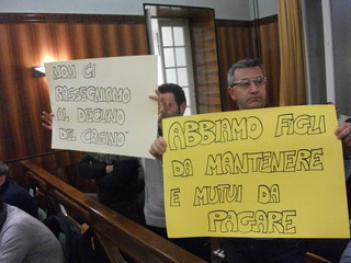 Il consiglio comunale di Sanremo, come annunciato ieri, si è aperto con la questione di incompatibilità di quattro consiglieri comunali, in quanto dipendenti della casa da gioco o parenti stretti di lavoratori, di Maria Luisa Gugliotta, Massimiliano Moroni e Mario Ballestra del Pdl e di Francesco Prevosto del Pd. All'ordine del giorno figurava infatti la discussione e votazione del piano di impresa della casino spa. Questo particolare nodo è stato illustrato dal presidente del consiglio comunale Marco Lupi, mentre in aula tra il pubblico erano presenti numerosi dipendenti del casinò armati di cartelloni di protesta.