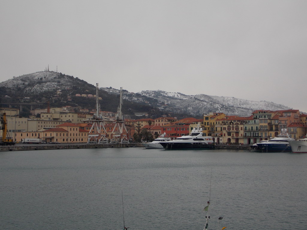 Il panorama di Imperia dopo la nevicata di oggi nelle foto di una nostra lettrice