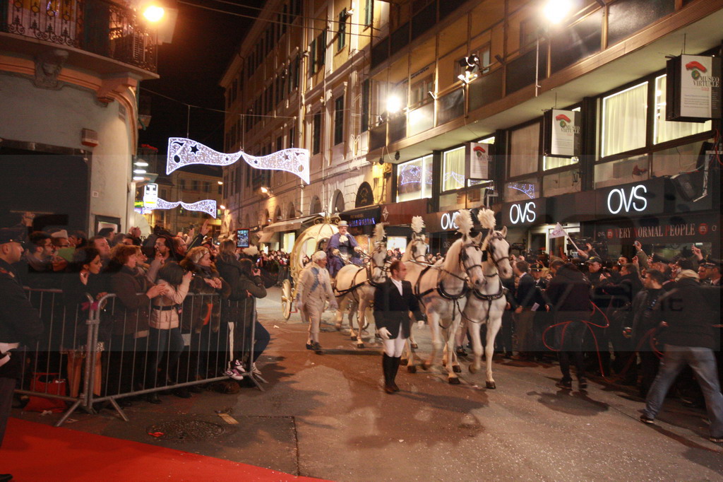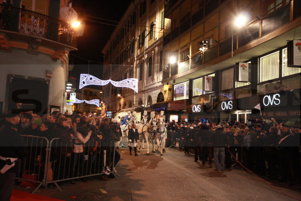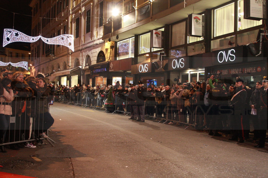 Ad attenderla assiepati alle transenne tantissimi curiosi che hanno applaudito e richiamato l'attenzione della torinese mentre con grande charme in abito da sera nero faceva il suo ingresso verso il palco. Il primo momento clou di questa edizione del Festival.