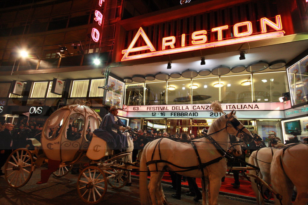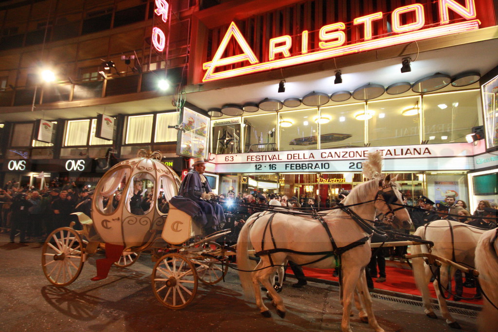 Ecco le foto dell'arrivo davanti al teatro Ariston di Luciana Littizzetto, co-conduttrice insieme a Fabio Fazio di questa 63ma edizione del Festival di Sanremo.