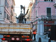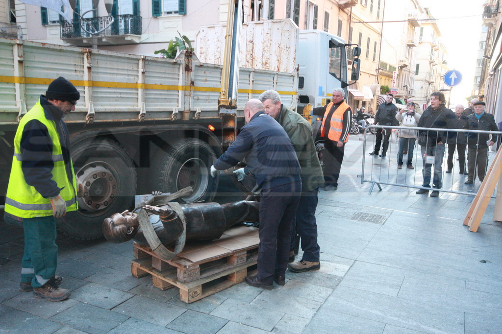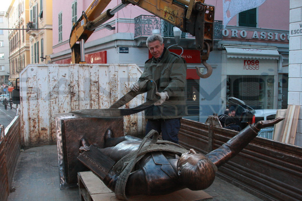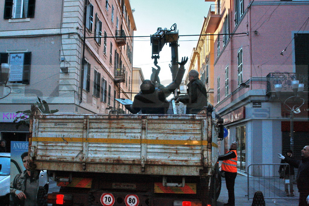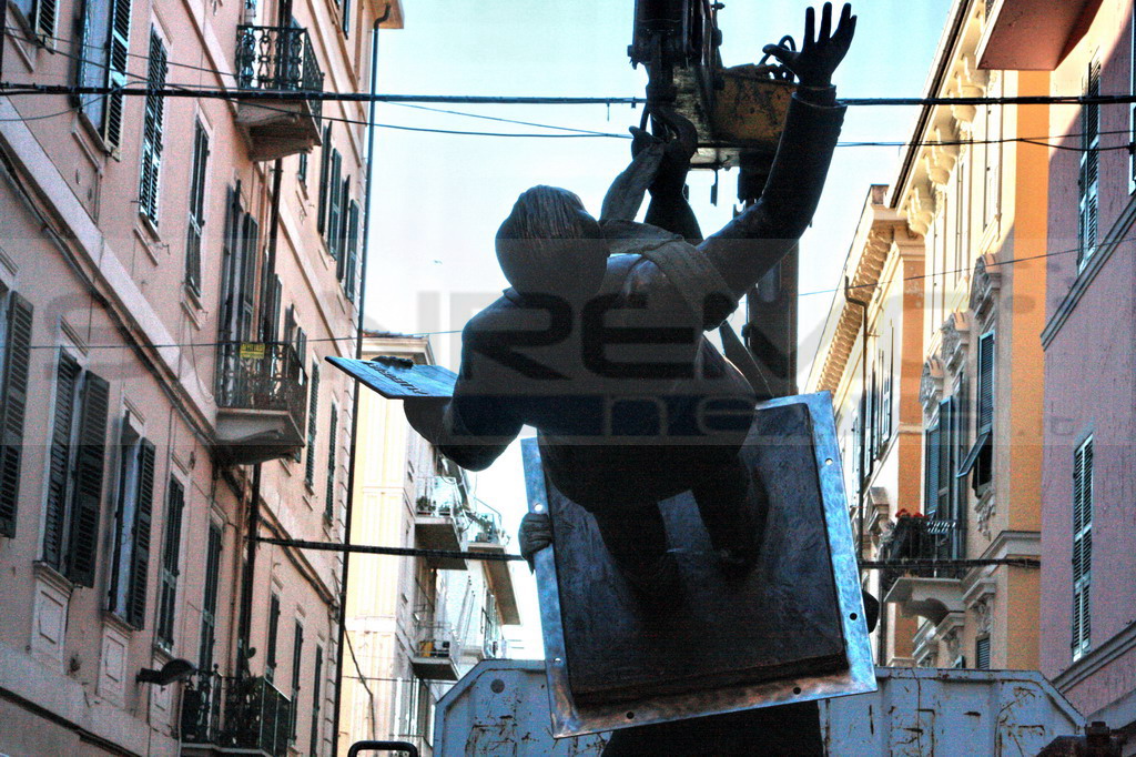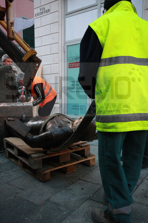 Intorno alle ore 8 la scultura è stata posizionata all'ingresso della via e dopo le varie prove, assessore e tecnici hanno optato per la collocazione laterale a sinistra con sguardo rivolto verso il mare. Questo monumento da oggi rimarrà lì in memoria del celebre personaggio mancato a Montecarlo l'8 settembre 2009. Lui era molto legato alla città dei fiori ed al suo Festival ed è stata un'idea della famiglia quella di mettere a disposizione questa statua, attraverso la fondazione Bongiorno.