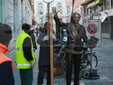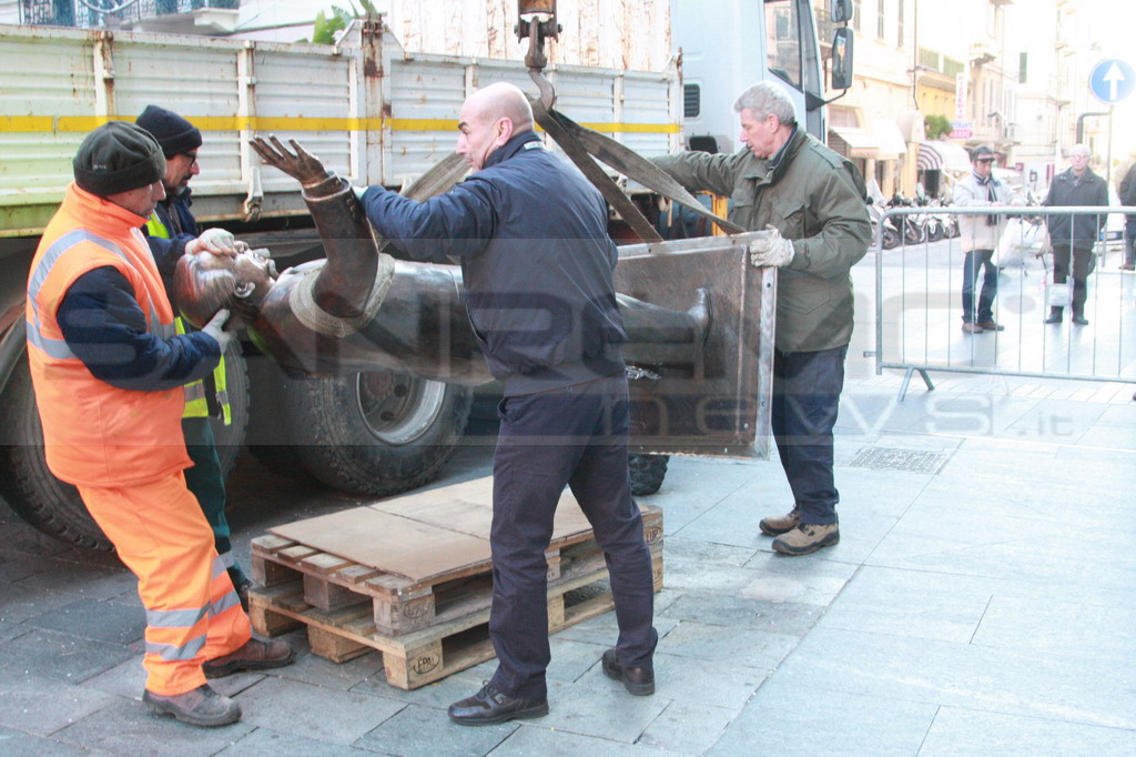 La statua di Mike Bongiorno è stata posizionata questa mattina in via Escoffier a Sanremo in vista dell'inaugurazione attesa per venerdì durante la penultima serata del Festival. Ad assistere al posizionamento dell'importante monumento erano presenti l'assessore Antonio Fera, che si è fatto carico di tutto l'iter dalla scelta del luogo, passando per l'arrivo, sino ad arrivare al posizionamento della statua. Oltre a lui ovviamente la squadra di tecnici del comune e l'architetto Giulia Barone.
