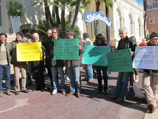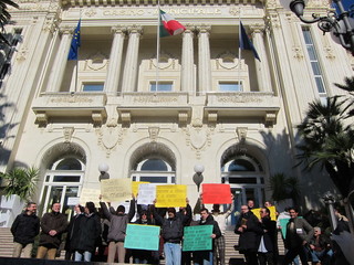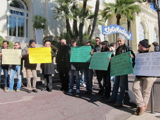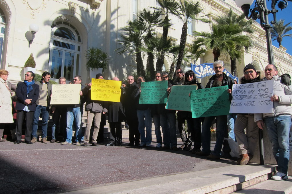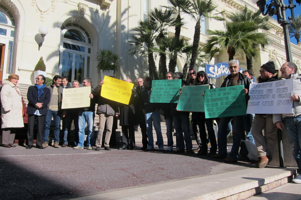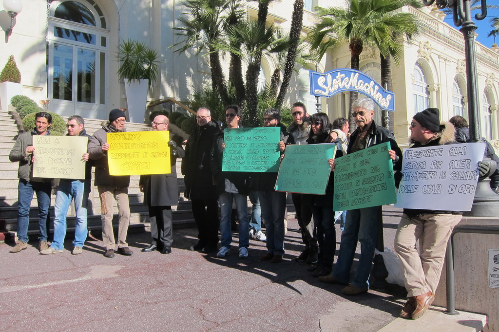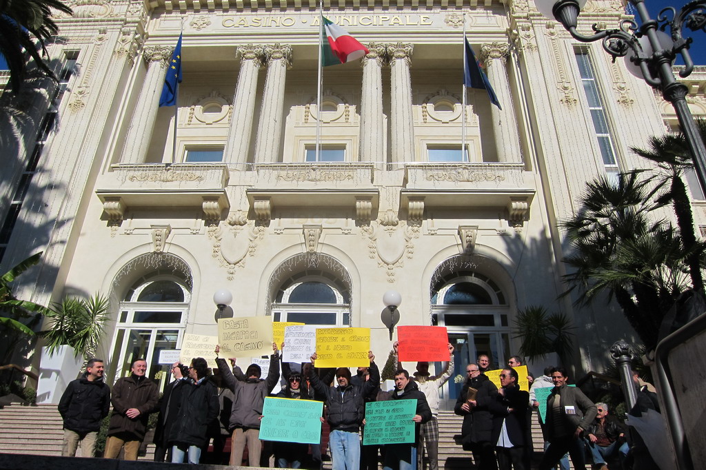 Sit-in di protesta questa mattina davanti al Casinò di Sanremo da parte della sezione locale dello Snalc, Sindacato Nazionale Autonomo Lavoratori Case da gioco.
