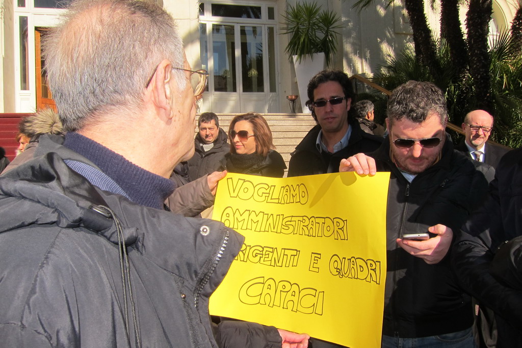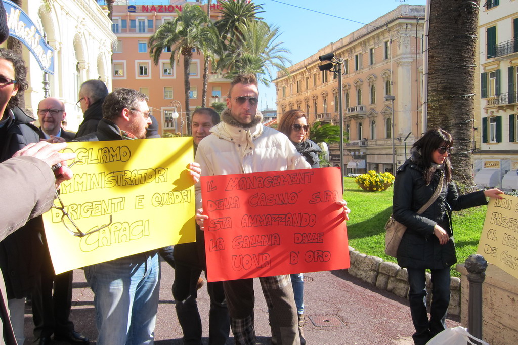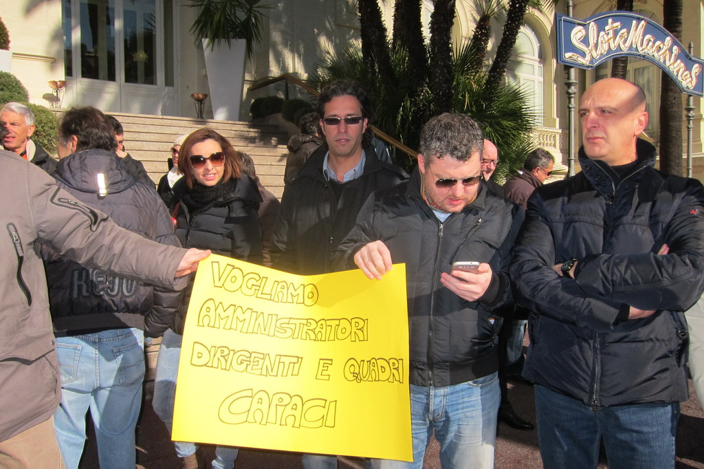 “Il management del Casinò se ne deve andare a casa”, “La colpa della crisi è degli amministratori del Comune e del Casinò”: con queste e altre frasi riportate sui cartelli di protesta, molti dipendenti per la prima volta sono scesi oggi in ‘piazza’ per dare un segnale e chiedere un cambiamento di direzione ai vertici.