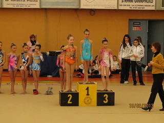 Nella prima fascia Klarisa Kopliku ha migliorato di ben 3 posizioni il suo piazzamento, classificandosi seconda, distinguendosi nei 3 esercizi per precisione, eleganza ed espressività. Nelle allieve di 2° fascia, un altro secondo posto e' stato ottenuto da Daria Fokina, anche lei migliorandosi rispetto alla prima gara, mettendosi in evidenza per grinta, scioltezza ed espressività nei 4 esercizi della prova, contrassegnata da elevate difficoltà. Entrambe le atlete, con questo risultato, si sono qualificate per la fase interregionale che si terra' il 10 marzo a Pavia. Di valore anche l'ottavo posto per Ilham Amrassal, all'esordio nella nuova categoria e alle prese con nuovi attrezzi come le clavette ed il nastro; purtroppo l'emozione ha un po' frenato la giovanissima atleta, ma le sue qualità di eleganza ed agilità sono egualmente emerse.