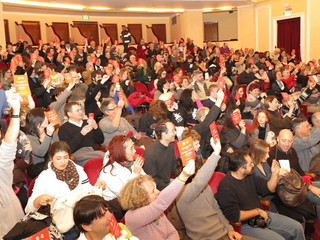 “Siamo tutti conigli” nel teatro dell’Opera. Questa mattina alle 7 più di 250 fans non hanno mancato l’appuntamento con il loro programma radiofonico preferito “Il Ruggito del coniglio” che, in occasione del Festival, sta trasmettendo dal Teatro dell’Opera del Casinò. Sono arrivati da tutta la Liguria, hanno atteso con pazienza l’inizio e hanno poi partecipato alla trasmissione raccontando anche episodi della loro vita e commentando la giornata di San Valentino con Marco Presta e Antonello Dose.