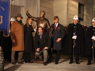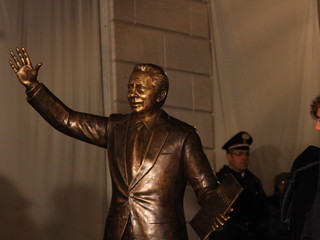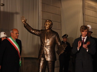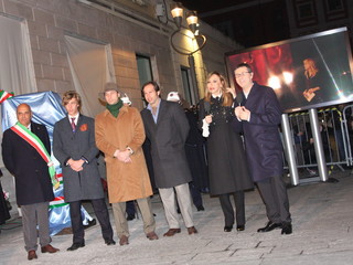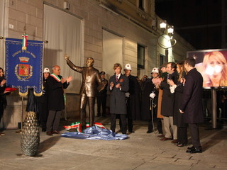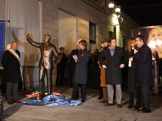 Dopo aver fatto parlare tanto di se stasera all'interno di Sanremo Story, penultima serata del Festival, è stata inaugurata la statua dedicata a Mike Bongiorno. Un evento nell'evento, che ha visto la partecipazione di tutta la famiglia del presentatore, la moglie Daniela Zuccoli ed i figli Leonardo, Nicolò e Michele Pietro Filippo. Al loro fianco ovviamente il presentatore di questa edizione della kermesse Fabio Fazio e l'assessore Antonio Fera, in rappresentanza dell'amministrazione comunale.