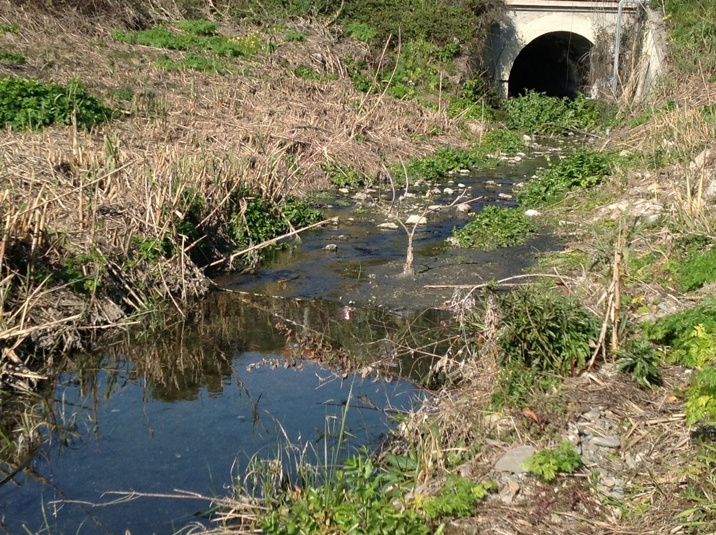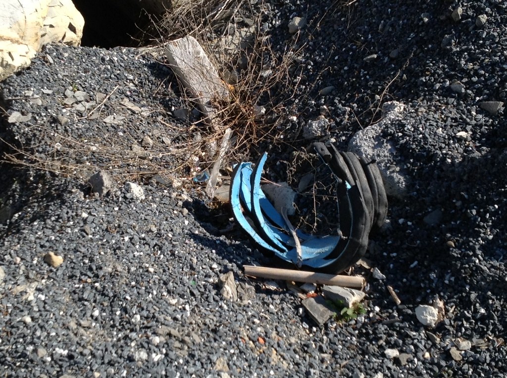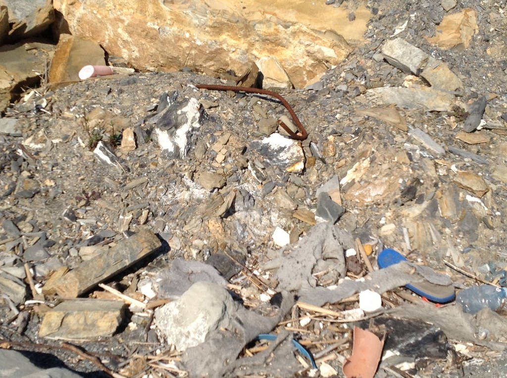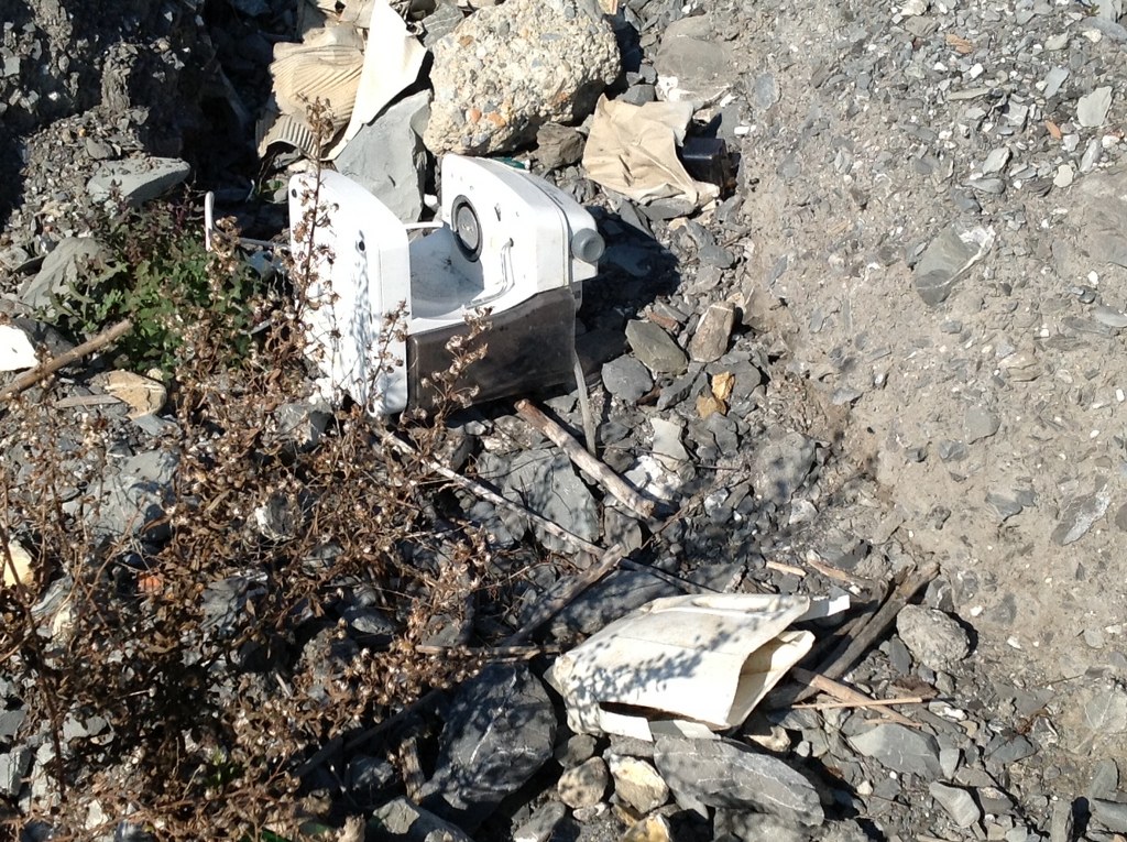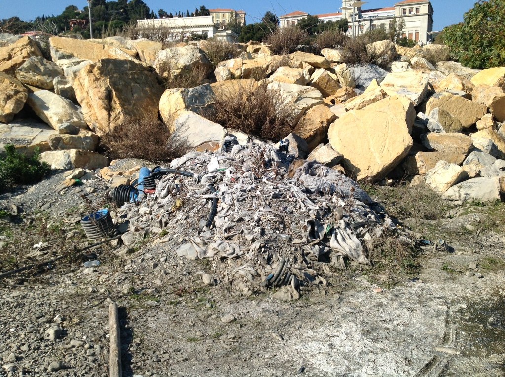 Avventurandosi lungo la spiaggia notiamo un gran numero di rifiuti, bottiglie di plastica e vetro, scarti di tubi di plastica, indumenti, un copertone di un camion, una macchina per il caffè, una lavatrice e molto altro ancora. L'aria lungo il rio Baitè è irrespirabile e l'acqua è putrida.