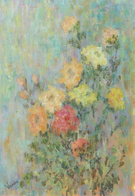 Pertanto è possibile ancora ammirare i quadri della pittrice tutti i giorni fino a domenica prossima presso il Caffè Mondino di via Vittorio Emanuele a Bordighera. La pittrice Wanda Plataroti si è fatta conoscere artisticamente intervenendo a esposizioni collettive e mostre personali, partecipando e vincendo concorsi locali e internazionali. Le sue opere fanno parte di collezioni private in Italia, Francia, Olanda e Belgio. I soggetti preferiti sono fiori e animali che rappresenta con i caldi colori della sua Liguria. Ricopre il ruolo d’insegnante presso l'Università della terza età di Ventimiglia.
