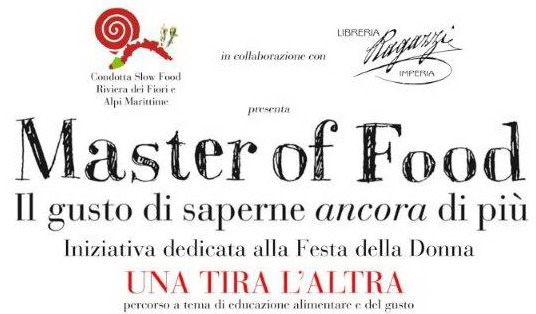 Dopo la straordinaria serata all'Istituto Alberghiero di Arma di Taggia, oltre quaranta amici hanno celebrato le eccellenze culinarie degli allievi formati da straordinari docenti, la nostra condotta prosegue la collaborazione con la Libreria Ragazzi di Imperia Oneglia. Per tre domeniche, a partire dalla prossima, nelle accoglienti sale della libreria si terranno le lezioni del percorso educativo sensoriale che Slow Food già da parecchi anni propone; non a caso il progetto'Master of Food il gusto di saperne ancora di più'. Lo slogan che chiarisce in modo semplice il percorso che la nostra associazione ha intrapreso già da parecchi anni.