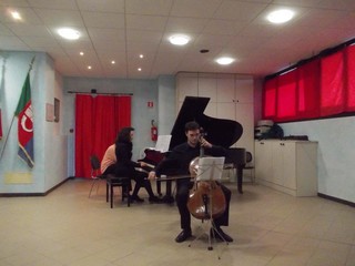 Leonardo Giovannini, anch'egli diciassettenne, studia violoncello dall’età di 10 anni col M° Vincenzo Malacarne, già violoncellista dell'Orchestra Sinfonica di Sanremo. È stato 1° Premio al ‘Concorso Internazionale Lorenzo Perosi’ di Tortona, 1° Premio alla Rassegna Musicale “A.GI.MUS” di Bordighera; nel 2007, 1° Premio nella categoria Formazioni Cameristiche presso l’International Music Competition di Cortemilia (Cn). Ha seguito i corsi di perfezionamento con il M° Marco Mosca e con il M° Filippo Burchietti. A chiusura del concerto, sicuramente da non dimenticare, la direttrice dell' Istituto Pergolesi, prof.ssa Adriana Costa, ha voluto ricordare ai presenti il prossimo recital di pianoforte con Alessandro Tosi, previsto per sabato 23 marzo, ore 16,30, sempre nella Sala polivalente di Via Colombo.