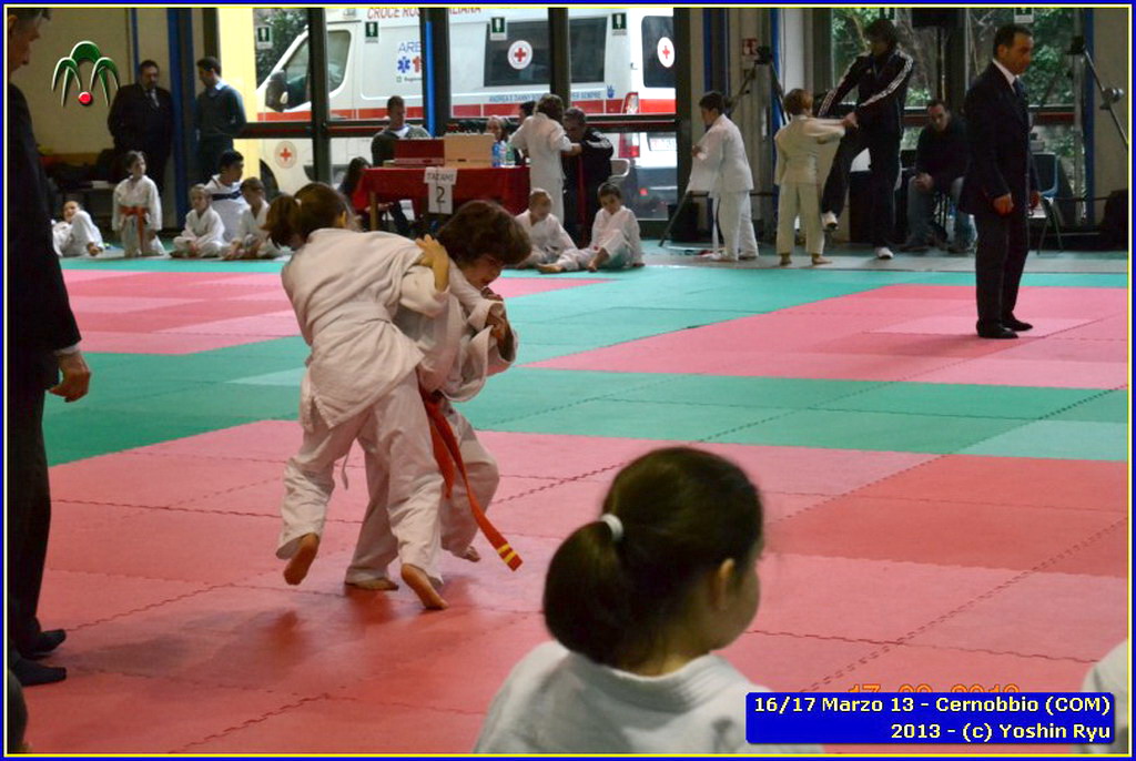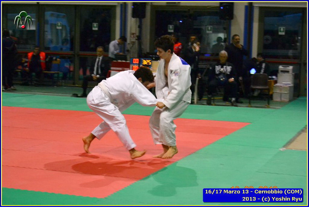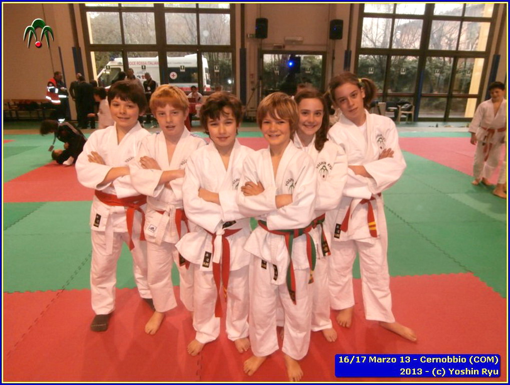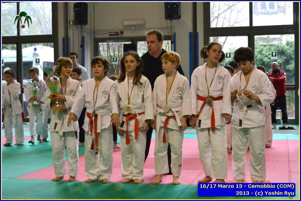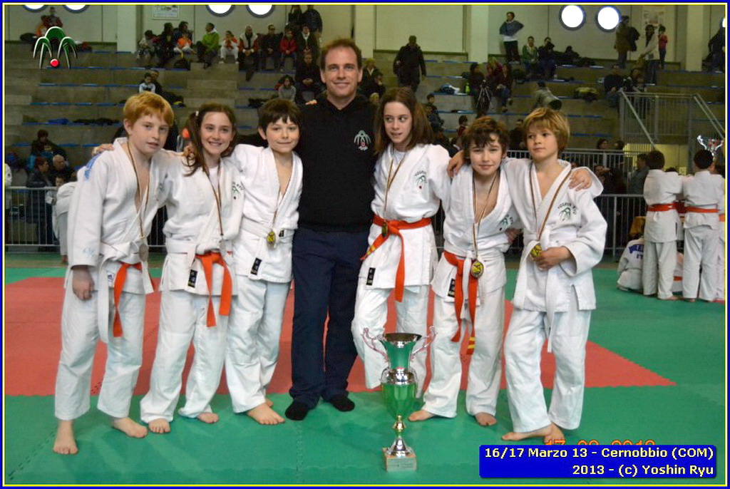 Erano 9 le squadre partecipanti. Per lo Yoshin Ryu la prima esperienza di questo tipo di gara. Appassionante. I ragazzi incontrano il team del Judo Segrate e lo sorpassano con 5 vittorie a 0. Il tabellone sempre piu in salita incontrano il Judo Ronin di Monza, e riescono anche con loro con 5 vittorie a 0. E’ fatta, lo Yoshin Ryu è in finale, contro i padroni di casa e detentori del titolo: i fortissimi atleti del Judo Sanakaki Como. Oliver riesce nel primo incontro, con molta fatica, ma guadagna il primo punto per la squadra. Lorenzo viene fermato dal bravissimo avversario del Sankaku Como che va a pareggio. 1 - 1. E’ il momento di Aurora, ma putroppo l’infortunio precedentemente subito le impedisce di controllare l’avversario e il Sankaku passa in vantaggio, 2-1. Alberto è molto preparato nonostante le molte assenze per malattia che l’hanno constretto a letto. E’ calmo e concentrato, vuole ed ottiene quella vittoria che porta a pareggio la situazione: 2-2. Ora tutto è puntato su Gaia: fortissima la sua avversaria, che non le lascia tregua. Gaia insiste con le sue strategie e tecniche studiate in palestra, e riesca a conquistare prima un mezzo punto e poi blocca la schiena dell’avversaria sul tatami per altri 15 secondi. Ippon!! Yoshin Ryu è primo classificato, gli spalti esplodono un urla di gioia e applausi, i genitori in lacrime di commozione, vendendo gli stessi atleti abbracciandosi e stringendosi forte per il fantastico risultato.