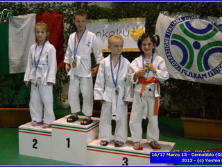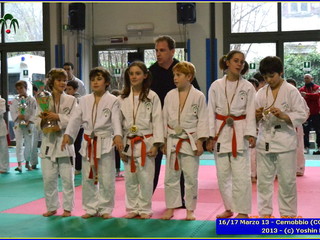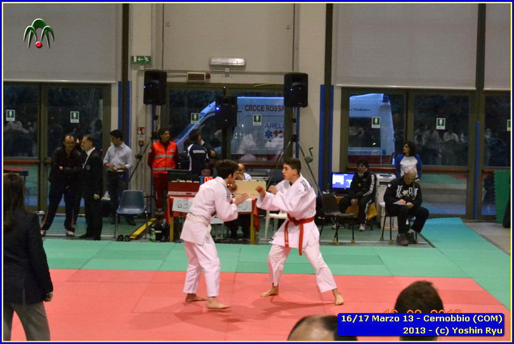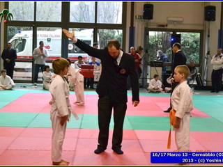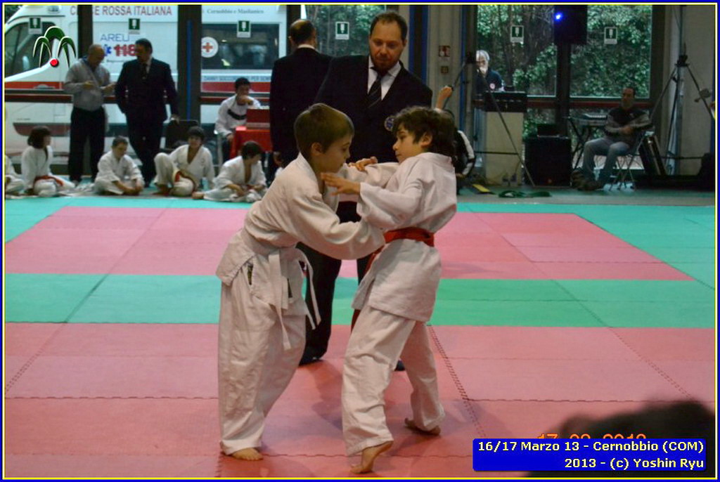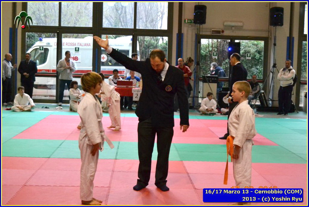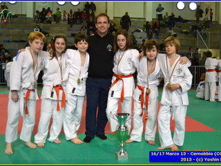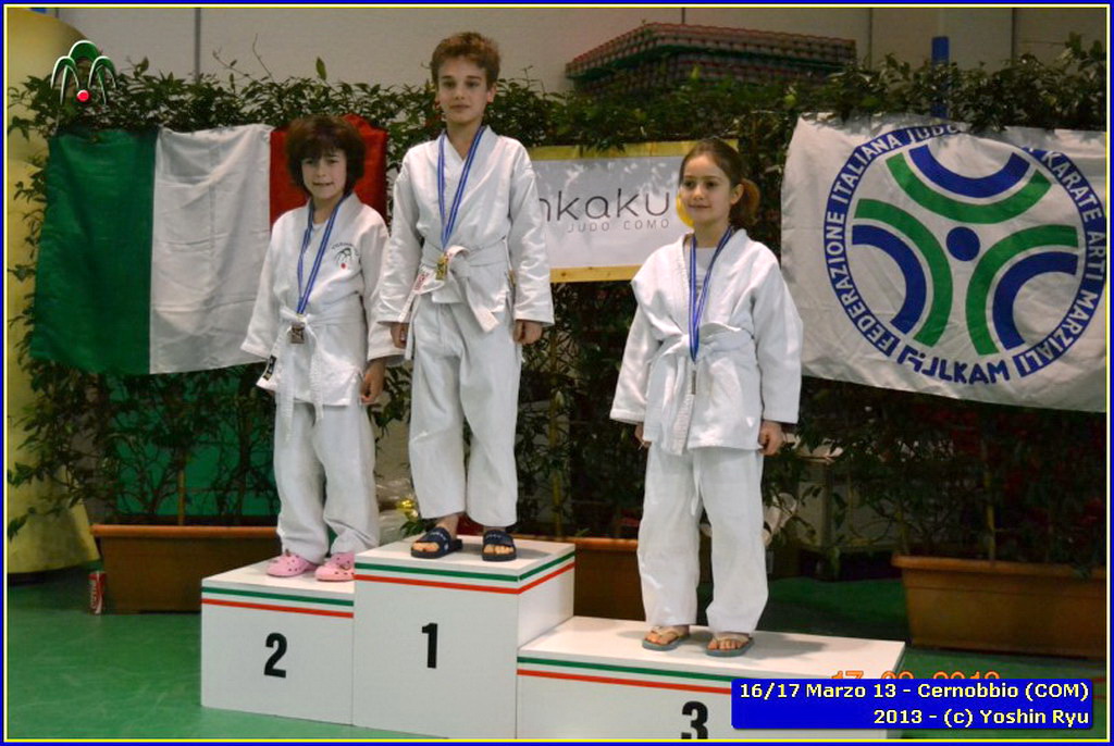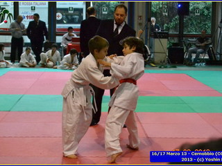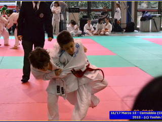 Erano 9 le squadre partecipanti. Per lo Yoshin Ryu la prima esperienza di questo tipo di gara. Appassionante. I ragazzi incontrano il team del Judo Segrate e lo sorpassano con 5 vittorie a 0. Il tabellone sempre piu in salita incontrano il Judo Ronin di Monza, e riescono anche con loro con 5 vittorie a 0. E’ fatta, lo Yoshin Ryu è in finale, contro i padroni di casa e detentori del titolo: i fortissimi atleti del Judo Sanakaki Como. Oliver riesce nel primo incontro, con molta fatica, ma guadagna il primo punto per la squadra. Lorenzo viene fermato dal bravissimo avversario del Sankaku Como che va a pareggio. 1 - 1. E’ il momento di Aurora, ma putroppo l’infortunio precedentemente subito le impedisce di controllare l’avversario e il Sankaku passa in vantaggio, 2-1. Alberto è molto preparato nonostante le molte assenze per malattia che l’hanno constretto a letto. E’ calmo e concentrato, vuole ed ottiene quella vittoria che porta a pareggio la situazione: 2-2. Ora tutto è puntato su Gaia: fortissima la sua avversaria, che non le lascia tregua. Gaia insiste con le sue strategie e tecniche studiate in palestra, e riesca a conquistare prima un mezzo punto e poi blocca la schiena dell’avversaria sul tatami per altri 15 secondi. Ippon!! Yoshin Ryu è primo classificato, gli spalti esplodono un urla di gioia e applausi, i genitori in lacrime di commozione, vendendo gli stessi atleti abbracciandosi e stringendosi forte per il fantastico risultato.