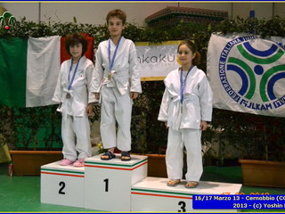 Nel pomerrigio è stato il momento dei piu piccolini, esordio alla gara per il deciso Riccardo Stancati che vuole portare a casa la sua medaglia e ci riesce: 2° posto per lui. Cosi anche Chiara Borgogno, che vuole emulare i successi del fratello, si esprime benissimo sul tatami, senza paura, e guadagna il 2° posto. Anche Alessia Ghilino si dimostrata all’altezza della situazione, soprendendo tutti per tutto quello che è riuscita a fare: 3° posto per lei.