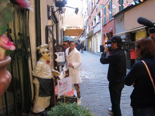 Ci sarà anche la 'sardenaira' delle Cantine Sanremesi nel filmato che andrà in onda a maggio in un programma di una televisione giapponese. Questa mattina infatti la troupe, da noi già avvistata ieri, inviata in Italia per conto della Fuji Television, ha effettuato le riprese nella città dei fiori girando veri e propri sketch in centro alla scoperta delle tradizioni locali.