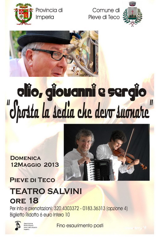 Secondo appuntamento della Stagione dei Concerti 2013 a Pieve di Teco “Teatro Salvini in Concerto”, nata da una collaborazione tra il Comune di Pieve di Teco, la Provincia di Imperia e l’Associazione Panta Musicà.