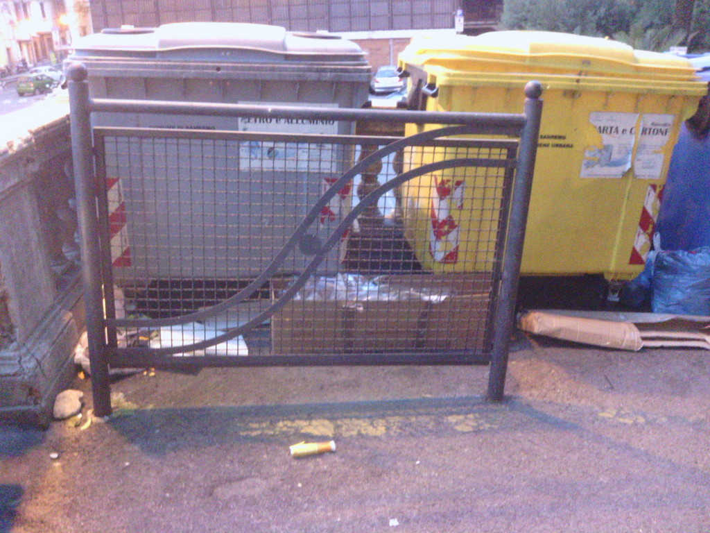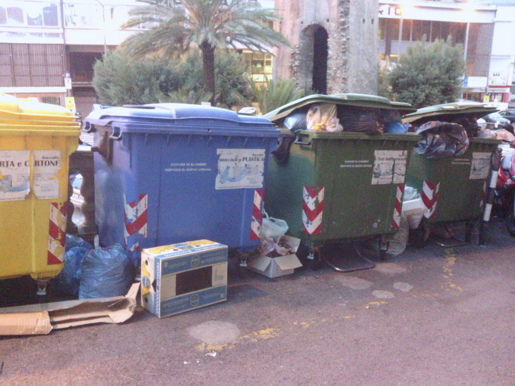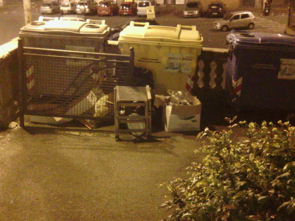 Le pattumiere, oltre a fuori uscire dai cassonetti ed emanare sgradevoli odori nonchè attirare la presenza e, sopratutto in estate, di insetti e quant'altro... contando la poca vicinanza alla porta d'entrata e della cucina, non è assolutamente bello da vedere, da sentire e non è igienico, i clienti, i passanti e i turisti così facendo si allontanano provocando un danno all'andamento dell'attività. Il problema è ancora più grave, ho mandato delle foto tanto da capire, ma la cosa peggiore è che qui davanti a me c'è una DISCARICA, FRIGORIFERI, SEDIE, TAVOLI, MATERASSI, DIVANI, e quant'altro si possa immaginare, tutti i santi giorni dell'anno.