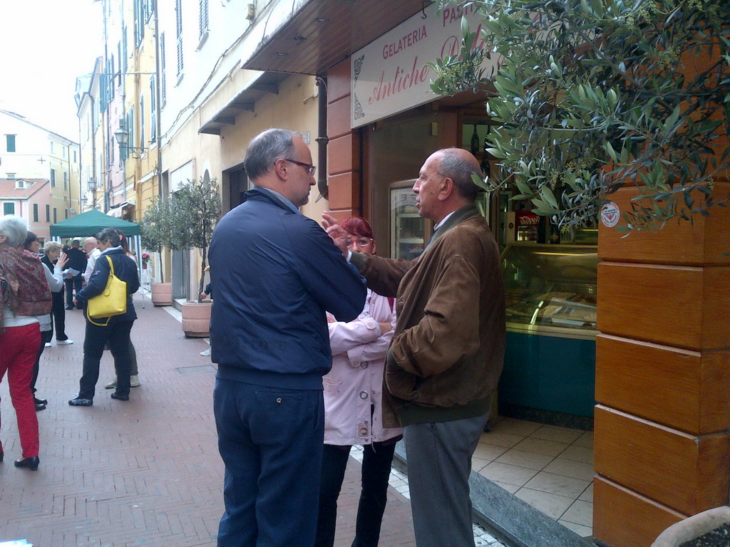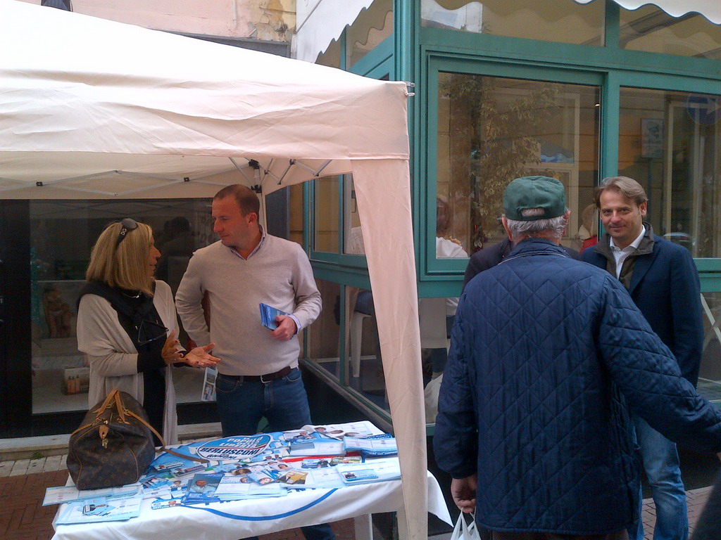 Mattinata ad Oneglia per il candidato sindaco del centro destra ad Imperia, Erminio Annoni. Il candidato si è recato al banchetto del Pdl in via San Giovanni e si è intrattenuto con i candidati delle liste a suo sostegno e numerosi simpatizzanti.