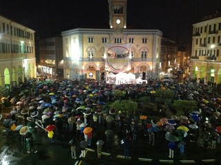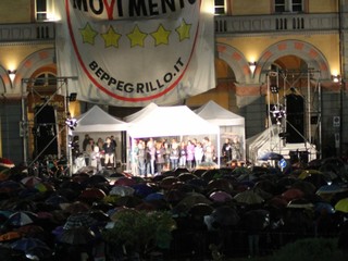 Malgrado la pioggia circa mille persone hanno assistito al show di Grillo che non ha risparmiato battute nei confronti dell'On. Claudio Scajola e dell'imprenditore romano Francesco Bellavista Caltagirone. Sono stati molti i temi di carattere nazionale toccati dal leader del Movimento 5 Stelle tra cui: la sfida politica che secondo Grillo lo vedrà scontrarsi contro il leader del Pdl Silvio Berlusconi già a settembre. Verso la fine della serata ha preso parola il candidato sindaco Antonio Russo che ha presentato la lista dei candidati alle prossime elezioni amministrative di Imperia in programma per il 26-27 maggio.