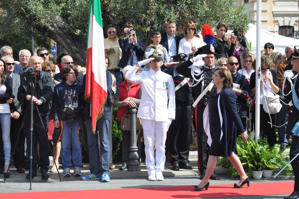 Grande partecipazione di cittadini alla celebrazione del 67° anniversario della nascita della Repubblica. L’evento si è tenuto in Calata Cuneo a Imperia e ha avuto avvio con la cerimonia dell’alzabandiera e la Rassegna del Prefetto, Fiamma Spena, al Reparto di Formazione. Un momento emblematico è stata la lettura dei due messaggi che il Presidente della Repubblica, come ogni anno, ha rivolto rispettivamente alla cittadinanza e a tutti i Prefetti per il loro ruolo di raccordo fra le realtà periferiche e le istituzioni centrali.