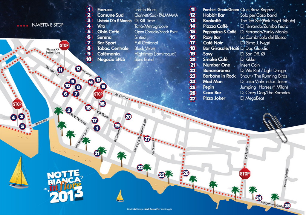 Una web radio, smsradio.net, trasmetterà in diretta l'evento con tanto di interviste ai protagonisti della notte più lunga di Ventimiglia.