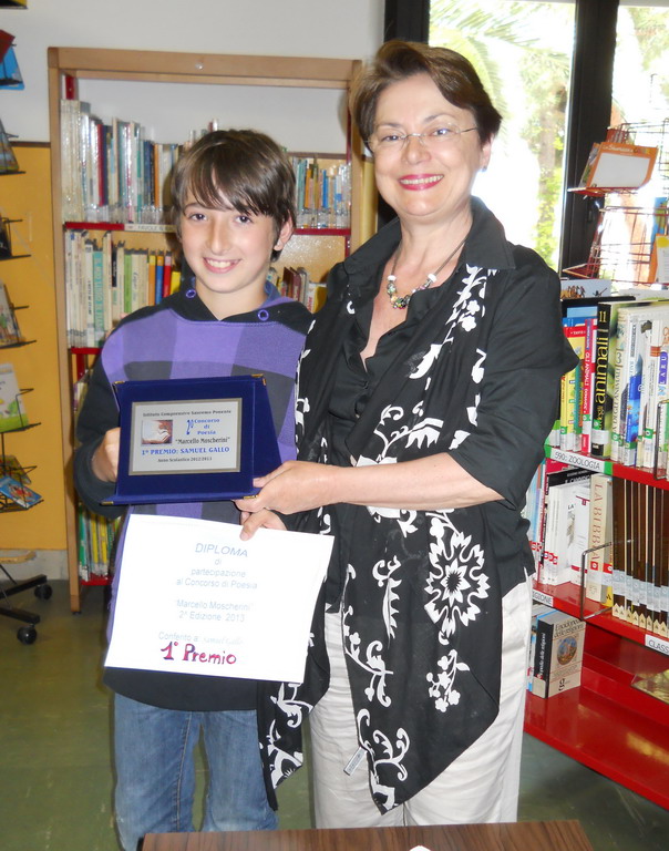 La Dirigente Scolastica, Dottoressa Alessandra Calza, ha premiato gli alunni: Samuel Gallo, primo classificato con la poesia ‘Il Lampo’ (pl. Asquasciati); Tabara Mbaye, secondo con ‘I gabbiani’; Riccardo Andreoli, terzo con ‘Terra’. Altri alunni segnalati: Alessio Avagnina, Thomas Potenza, Ergia Canavese, Fabiola Galasso, Alessio Taiello, (Pl. Asquasciati); Arthur Fontanelli, Giuseppe Divenuto (Pl. Ospedaletti), Egle Breggion (pl. Coldirodi).