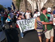 Molti dei manifestanti stanno sfilando con una maschera bianca sul volto ("Siamo cittadini senza volto, con le istituzioni che sono indifferenti" hanno detto) ed altri sventolando le bandiere dell'unione europea mentre alcuni di loro con in mano l'atto del Comune per la costruzione delle case.