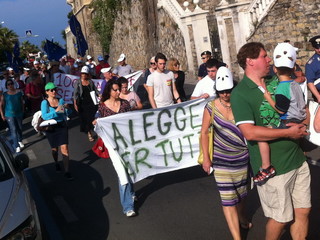 E' iniziata come previsto alle 8, con la partenza dalla sede dell'Università di via Nizza, la manifestazione dei proprietari delle villette considerate 'abusive' a Dolcedo, nell'immediato entroterra di Imperia.