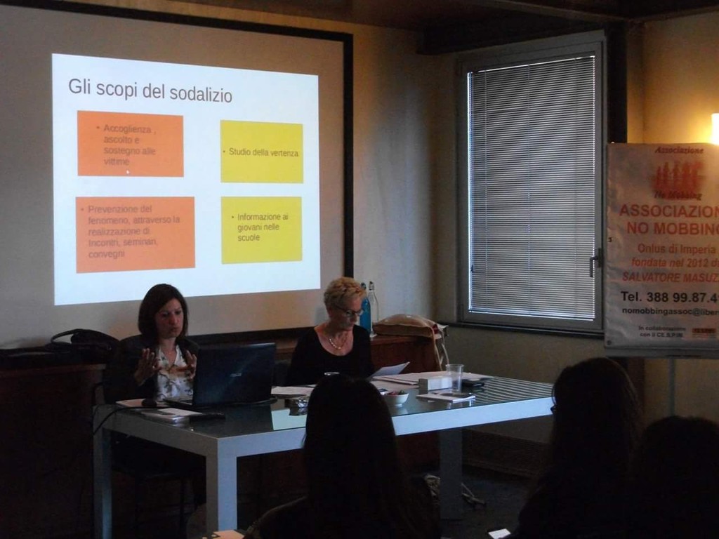 L’Associazione 'Nomobbing' di Imperia organizza il secondo incontro del corso 'Mobbing… quando lavorare stanca!', finanziato dal CE.S.P.IM. di Imperia. Si svolgerà sabato dalle 16, presso il Bar Skipper di via XX Settembre 29, a Diano Marina.